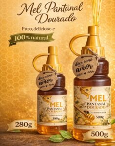 É o mel produzido por abelhas que coletam néctar de flores nativas, sem cultivo controlado, geralmente em áreas naturais como o Pantanal.